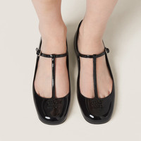 Classic, romantic and versatile. These patent leather ballerinas combine original design and cosmopolitan style. The tonal Miu Miu logo adds its signature to this stylish shoe. - Product code: 5F136E_069_F0002_F_005 - Upper with metal lettering logo - Screen-printed logo - Leather sole - Leather-covered insole - Imported