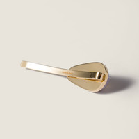 The iconic Miu Miu metal logo adds a contemporary accent to this patent leather barrette, completing each look with a touch of strong and sophisticated femininity. - Product code: 5IF242_069_F0230 - With metal trim - Barrette slide closure - Visible metal logo - Imported Height 1.6cm Width 6.5cm Materials Main material: Lambskin