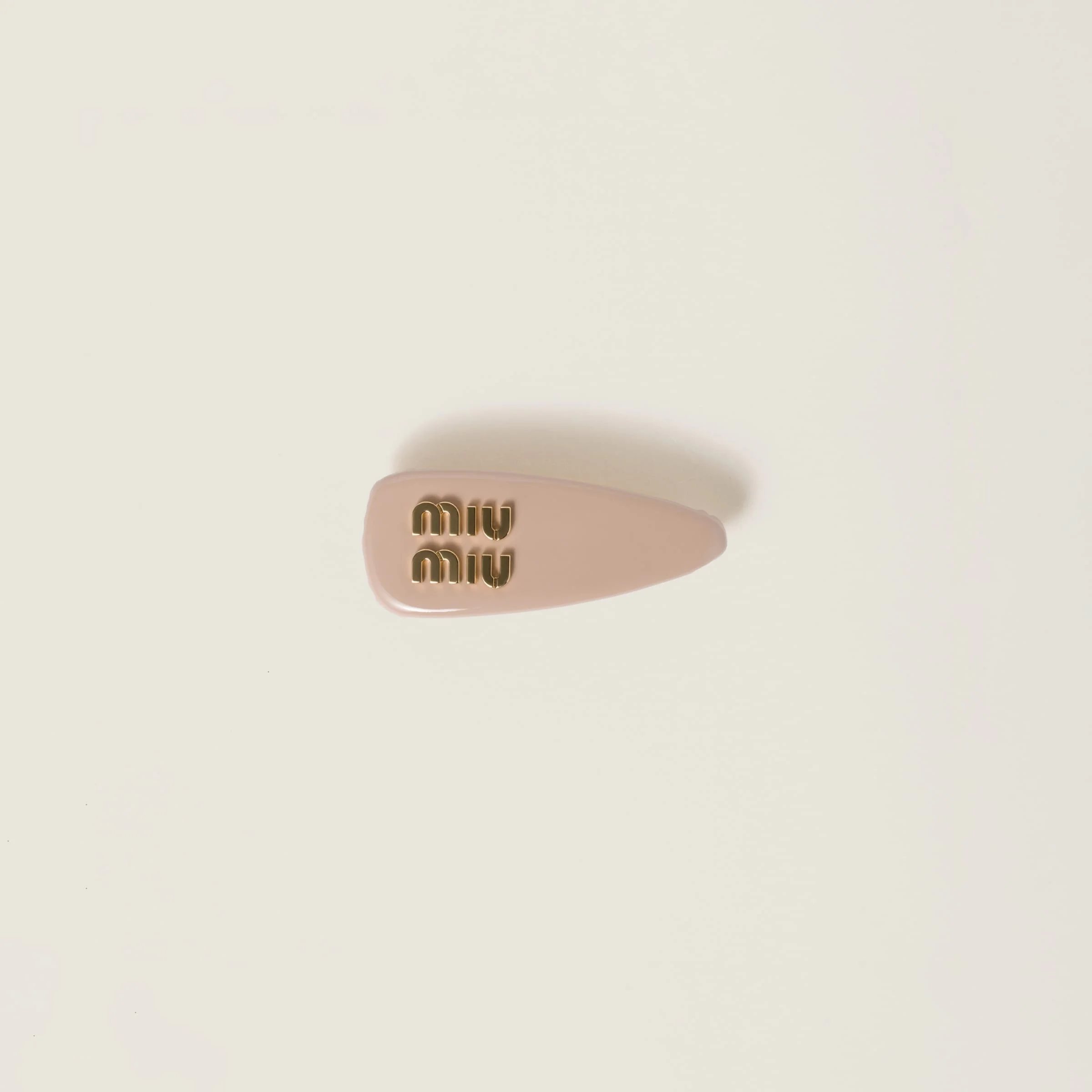 The iconic Miu Miu logo stands out on this patent leather hair clip. - Product code: 5IF092_069_F0236 - Metal lettering logo - Imported Height 3cm Width 8cm Materials Main material: Lambskin