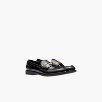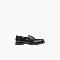 Cod. 5D773D_XWH_F0002_F_020 In the 1950s, loafers were part of the uniform worn by American college students. Opposed to wearing a uniform, students started inserting a penny in the slot on the leather strap, which originated the name "penny loafer." This timeless footwear synonymous with tradition is reimagined by Miu Miu in the new collection in a bolder version. - Apron with leather strap and metal ornament - Leather lining - Embossed logo on the tongue - Rubber sole - 20 mm heel - Leather insole