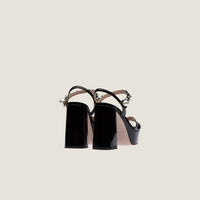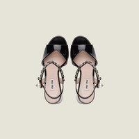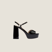A metal chain and artificial pearl are precious contrasts that characterize these patent leather sandals. Ample volumes created by the platform emphasize the feminine line of the shoe. - Product code: 5XP883_XWA_F0002_F_110 - Upper with metal chain and artificial pearl - Fabric logo label - Leather and rubber sole - 110 mm patent leather-covered heel - 35 mm patent leather-covered platform - Imported
