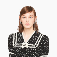 Cod. 5JO661_2DNC_F0OKL The logo becomes the protagonist of these earrings from the new Miu Miu collection. Luminous crystals enhance this accessory, making it feminine, in contrast with the modern steel finish metal hardware. - Metal with artificial crystals - Pendant with artificial crystals - Palladium finish - Visible logo - Pierced ears - Hypoallergenic and nickel free materials MATERIALS Other Materials