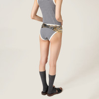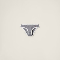The collaboration between Petit Bateau and Miu Miu has inspired an elegant and playful kidswear wardrobe. The timeless stripe motif characterizing these briefs celebrates the texture of ribbed jersey enriched with iconic embroidered logos. - Product code: SP9463_161J_F0UB0_S_OOO - Embroidered logos - Imported - The model is 178 cm tall and wears a size 38 Materials Main material: 100% Cotton