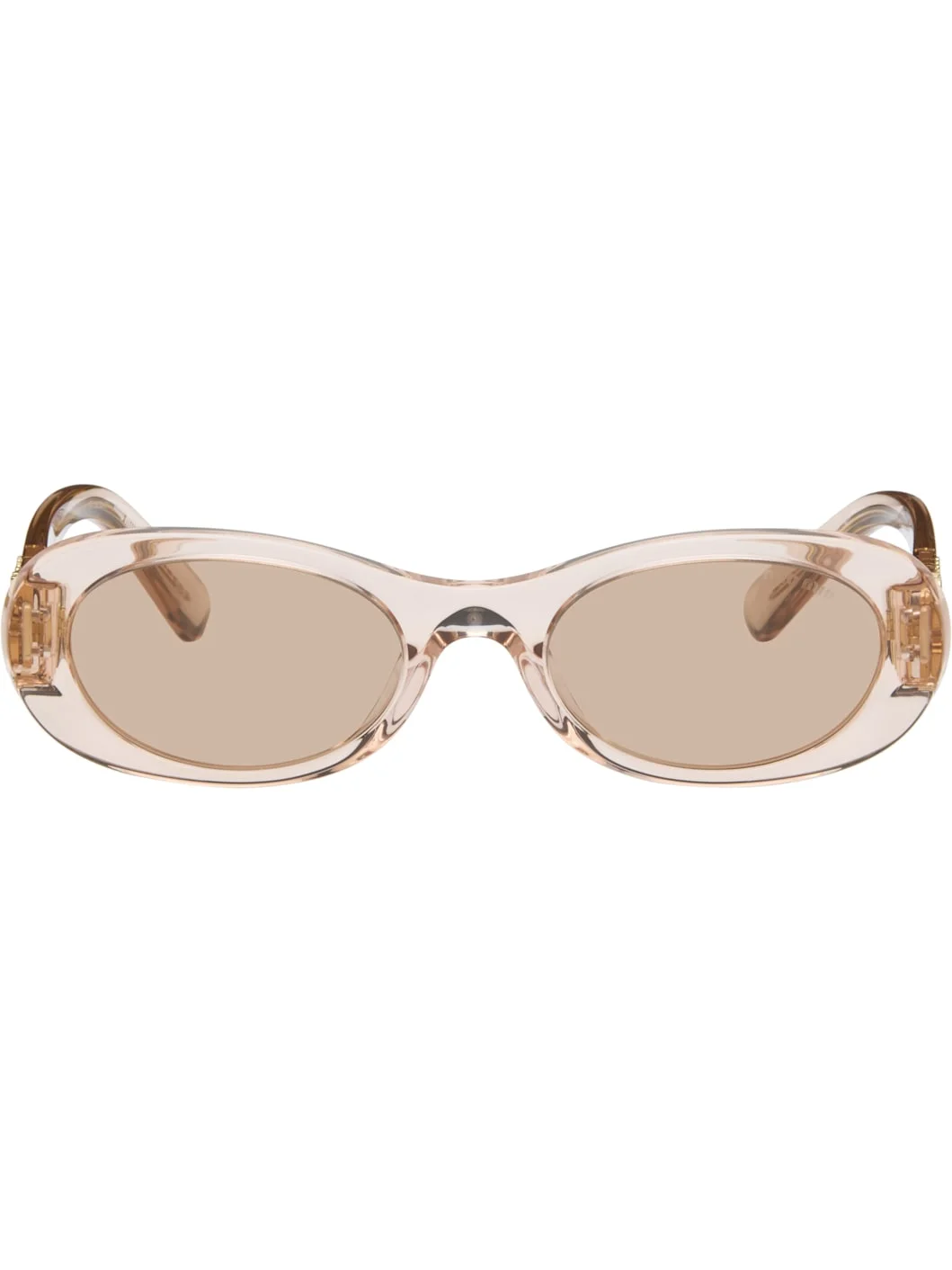 Oval transparent acetate-frame sunglasses. · Pink-brown tinted lenses · Etched logo at lens · Integrated nose pads · Logo hardware at hinges · Core wire at temples · Hinged velour case included · Size: 50.20 140 Supplier color: Noisette transparent Acetate. Made in Italy 261209F005060