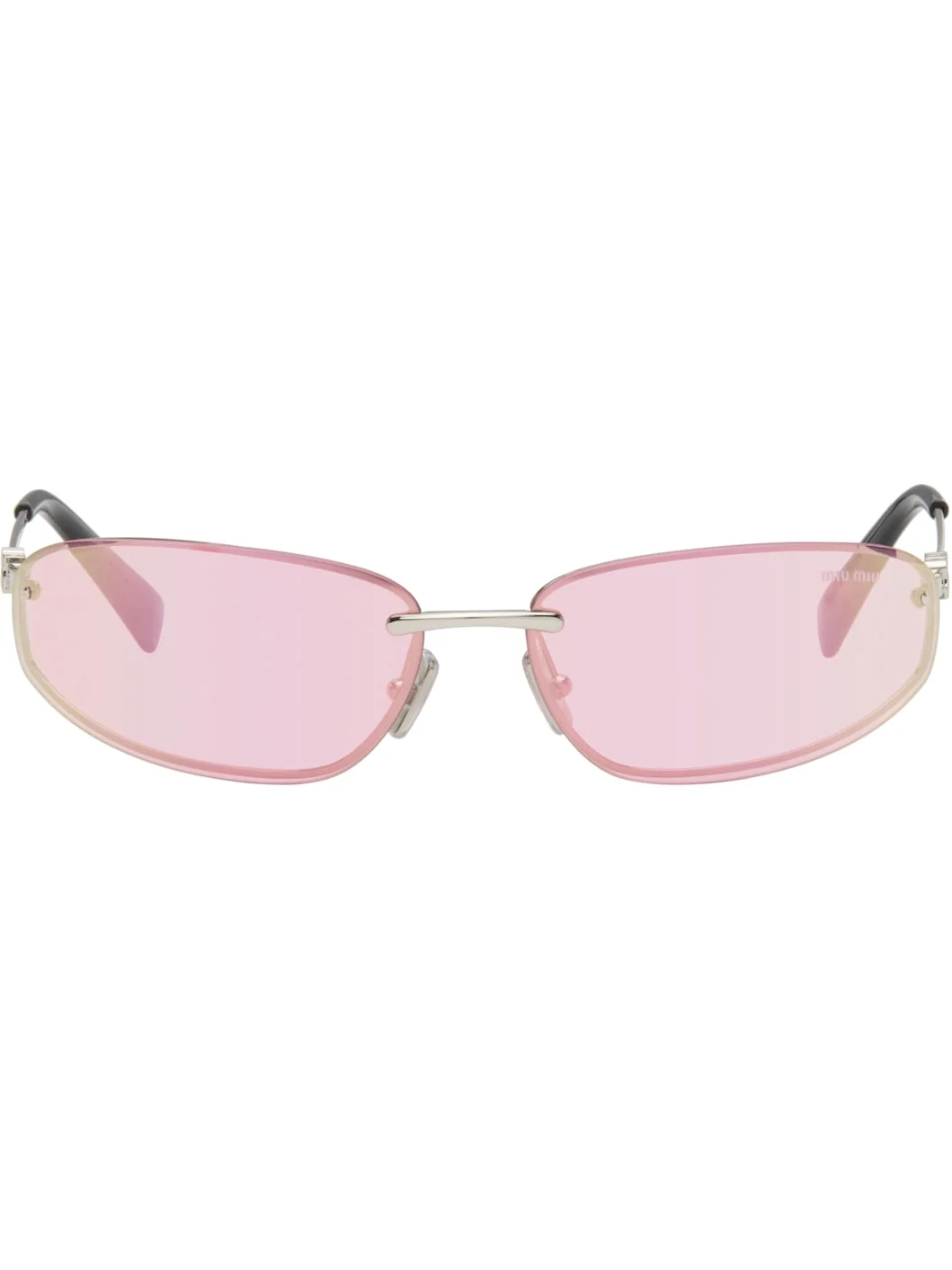 Oval cat-eye-style metal-frame sunglasses. · Mirrored pink lenses · Adjustable rubber nose pads · Logo hardware at temples · Transparent acetate temple tips · Includes case · Size: 69.15 130 Supplier color: Silver/Pink mirror lilac Metal. Made in Italy 261209F005045