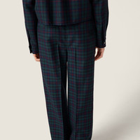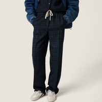 These plaid pants reinterpret sartorial codes with a sporty twist. The construction inspired by tracksuit pants give the garment a relaxed, contemporary attitude while preserving its unique, sophisticated allure. - Product code: MP1816_174R_F0D3Z_S_OOO - Straight fit - Elasticized drawstring waist - Angled front pockets - Back welt pockets - Embroidered logo on the back - Imported - The model is 180 cm tall and wears a size 38 Height 110cm Materials Main material: 100% Virgin Wool