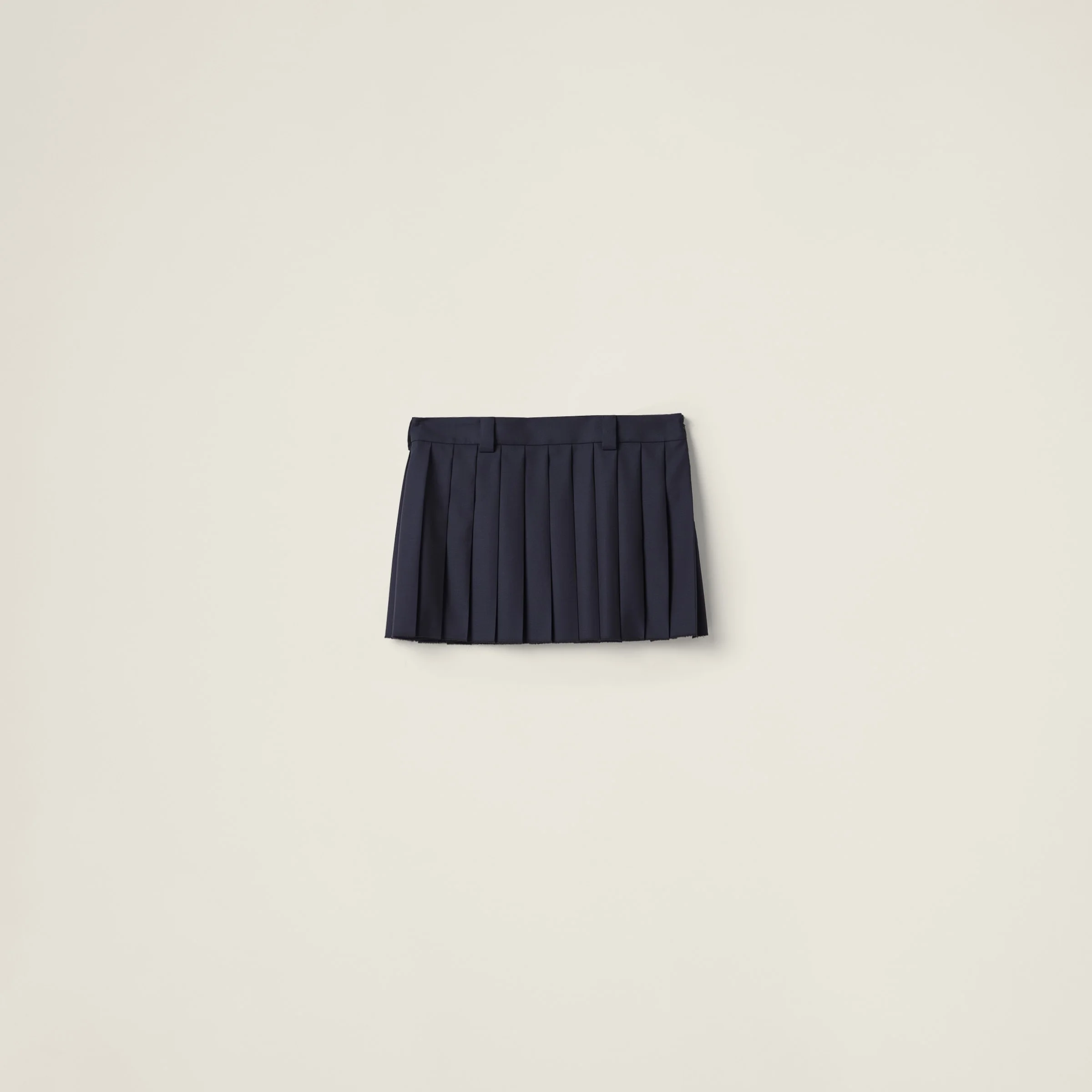 Refined pleating is combined with sleek lines to create dynamism in this batavia miniskirt. The logo patch completes the look with an iconic signature touch. - Product code: MG2040_11AD_F0008_S_232 - Pleated style - Unlined - Side zipper closure with hook - Embroidered logo patch - Imported - The model is 178 cm tall and wears a size 38 Height 32cm Materials Main material: 100% Virgin Wool