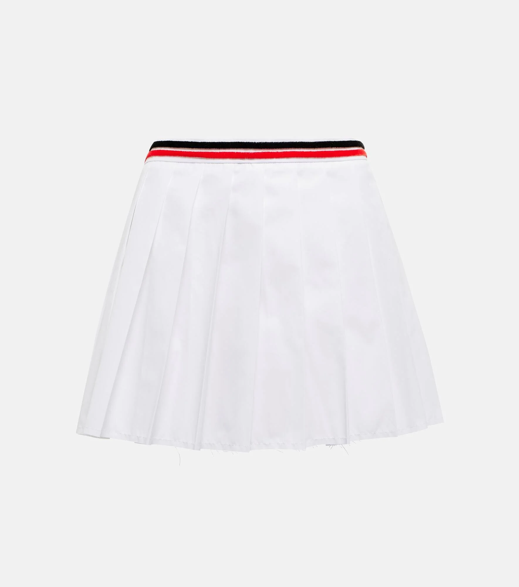 Miu Miu taps into trending tennis styles with this pleated miniskirt. It's made from crisp cotton-blend poplin with contrasting stripes at the waistline. Product Details - Made in Italy - Closure: zipped side - Care instructions: dry clean - Designer color name: Bianco - Material: 75% cotton, 25% polyester - Item number: P00710210 Size & Fit - True to size - Sits low on the hips - High-waisted - The model seen in the picture is 178cm-5'10" and wearing a size IT 40