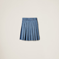 The washed treatment that characterizes the texture of the denim enhances the pleated silhouette of this skirt, interpreting elegant experimentation and relaxed, vintage charm. - Product code: GWD279_17GG_F0076_S_231 - Washed denim treatment - Classic fit - Unlined garment - Low-rise waist - Side zipper closure with hook - Contrasting top-stitching - Center-back length: 61.5 cm, Size: 38 - Embroidered logo - Imported - The model is 178 cm tall and wears a size 38 Height 61cm Materials Main material: 100% Cotton