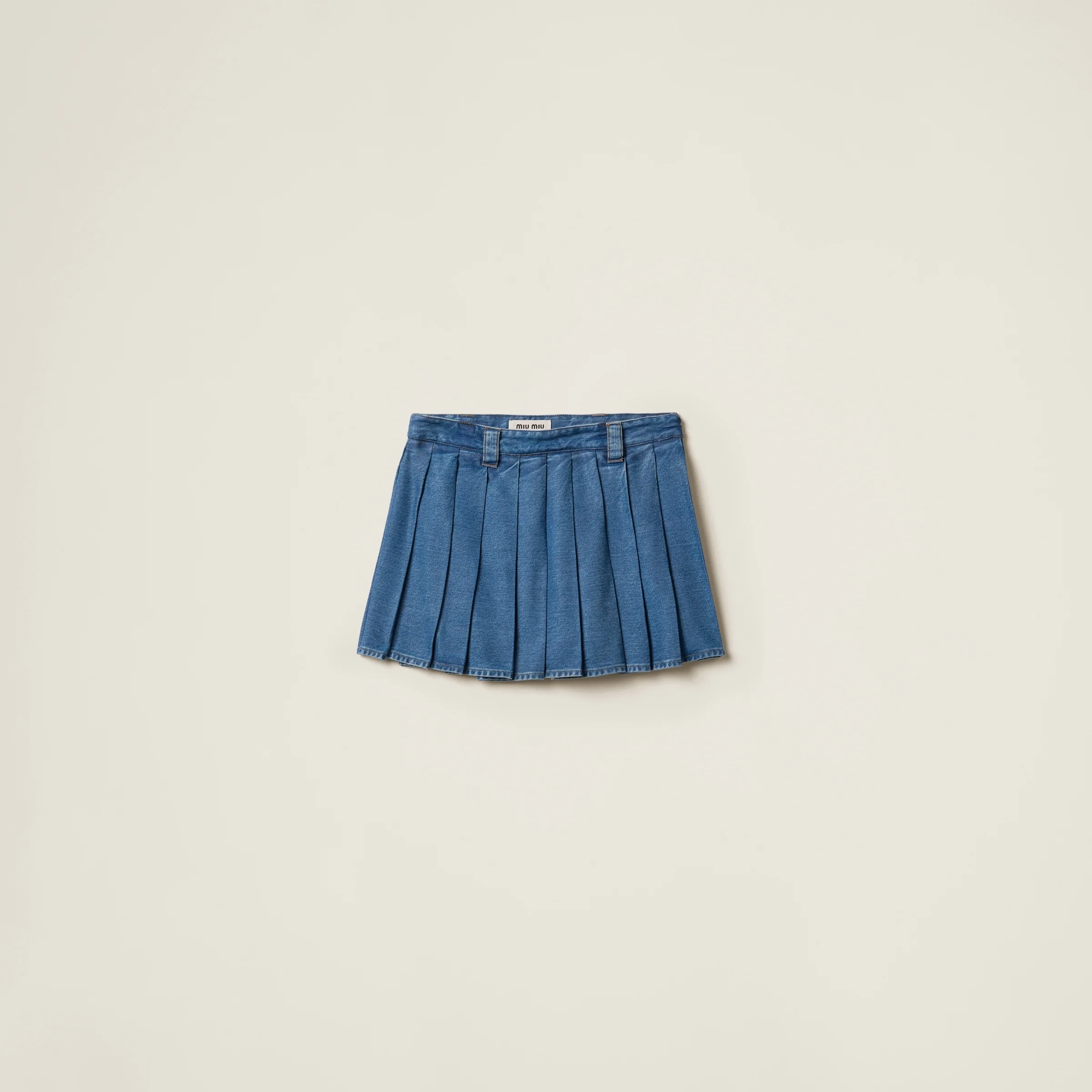 Pleats on the distinctive texture of denim add movement to the garment. The embroidered logo completes the look with an unexpected iconic note. - Product code: GWD329_143V_F0008_S_OOO - Washed treatment - Unlined - Regular fit - Low-rise waist - Zipper closure - Contrasting top-stitching - Embroidered logo - Imported - The model is 178 cm tall and wears a size 38 Height 35cm Materials Main material: 100% Lyocell
