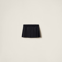 In this skirt, a college inspiration is combined with pleats that give movement to the garment and a pinstriped fabric recalling sartorial patterns. The embroidered logo completes the design with an iconic signature. - Product code: MG2040_15MQ_F0008_S_232 - Pleated silhouette - Unlined garment - Side zipper closure with hook - Embroidered logo - Imported - The model is 177 cm tall and wears a size 38 Height 32cm Materials Main material: 2% Cotton 2% Elastane 96% Virgin Wool