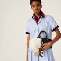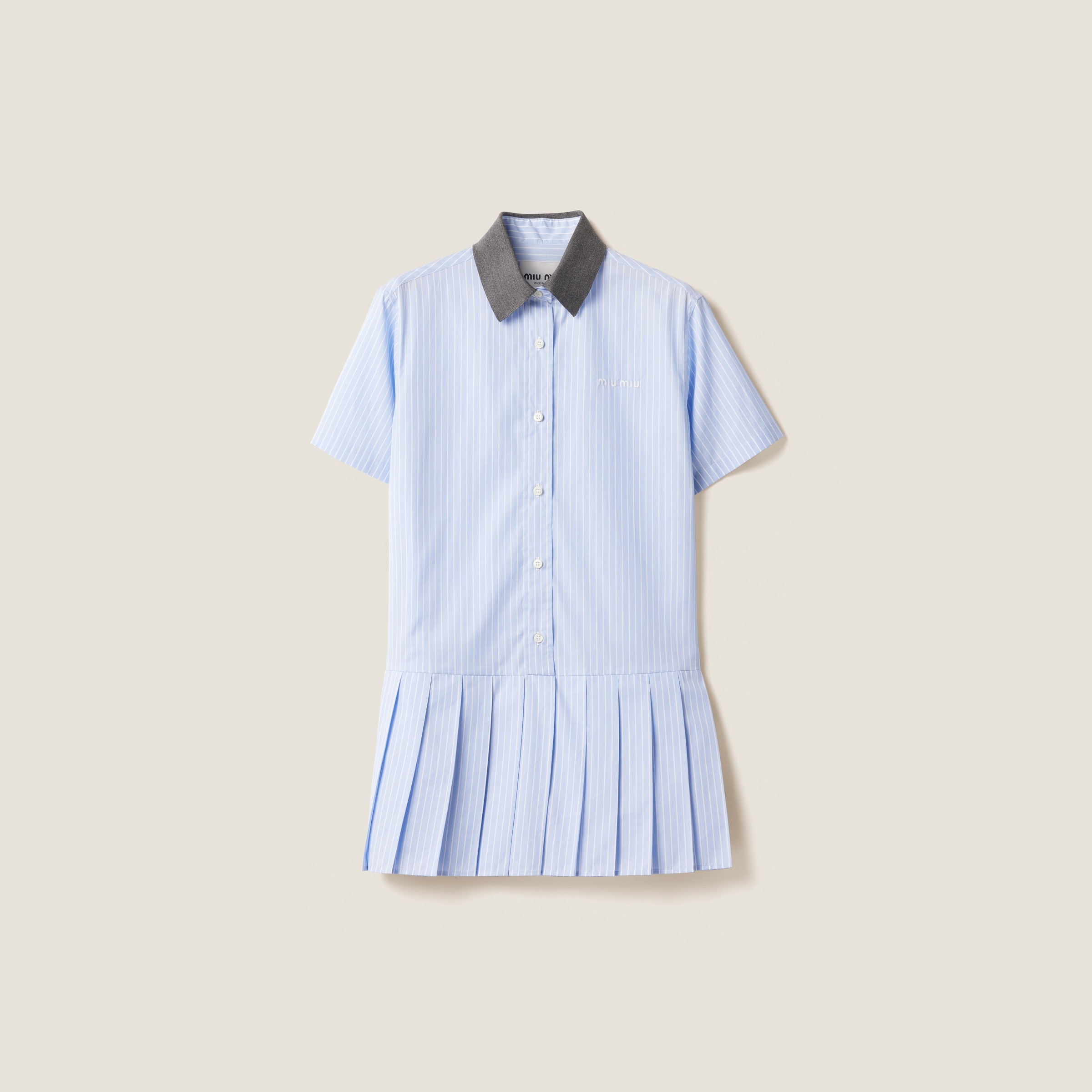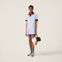 Sporty inspirations and tennis references define the character of this dress with pleated skirt. The knit collar and stripe motif enrich the simple, classic lines of the garment. - Product code: MF5399_137Q_F0X24_S_EM1 - Pleats - Unlined garment - Shirt-style collar - Front button closure - Short sleeves - Straight hem - Embroidered logo - Imported - The model is 178 cm tall and wears a size 38 Height 80cm Materials Main material: 100% Cotton