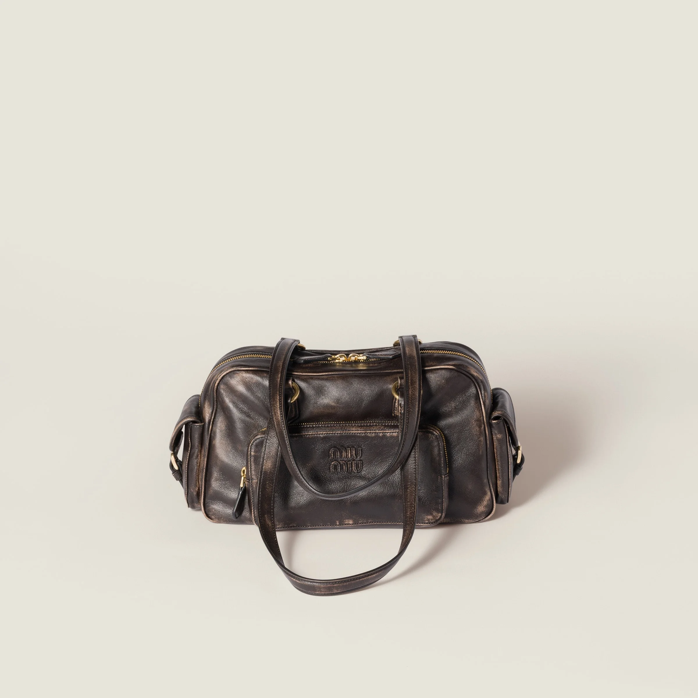 The top-handle style reinterprets the iconic lines of the Pocket back in a larger version enriched with an aged treatment of the nappa leather that enhances the distinctive multi-pocket design and its functional spirit. - Product code: 5BB179_AF8T_F0201_V_OOO - Nappa leather handles - Gold-tone hardware - Zipper pocket on the front and back - Flap pockets on the side - Cotton satin lining with zipper pocket - Embossed lettering logo on the pocket - Imported Height 19cm Width 32cm Length 14cm Materials Main material: Lambskin