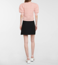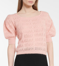 This Miu Miu top is made using a fine pointelle knit that's see-through at places. Its mohair-blend composition yields a pleasant texture. Product Details - Material: 67% mohair, 28% polyamide, 8% wool - Care instructions: dry clean - Made in Italy - Designer color name: Cipria - Item number: P00624050 Size & Fit - True to size - Semi-sheer - Straight fit - Slightly cropped - The model seen in the picture is 178cm-5'10" and wearing a size IT 40