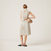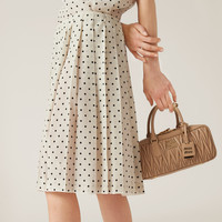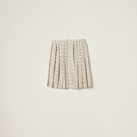 This crepe de chine skirt expresses a dynamic, edgy style thanks to the pleating that gives the garment movement and the polka-dot print. The embroidered logo completes the look with an iconic note. - Product code: MG2053_13LG_F0A72_S_232 - Pleating - Unlined - Side zipper closure with hook - Embroidered logo - Imported - The model is 175 cm tall and wears a size 38 Height 58cm Materials Main material: 100% Silk