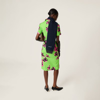 This poplin and jersey dress boasts a floral print in pop colors, adding character to the fitted silhouette with a bowling collar. - Product code: MF5568_15W8_F03ZZ_S_OOO - Purple" print - Fitted fit - Bowling collar - Centre front button closure - Short sleeves - Patch pockets on front - Embroidered logo - Raw cut hem - Imported - The model is 177 cm tall and wears a size 38 Height 110cm