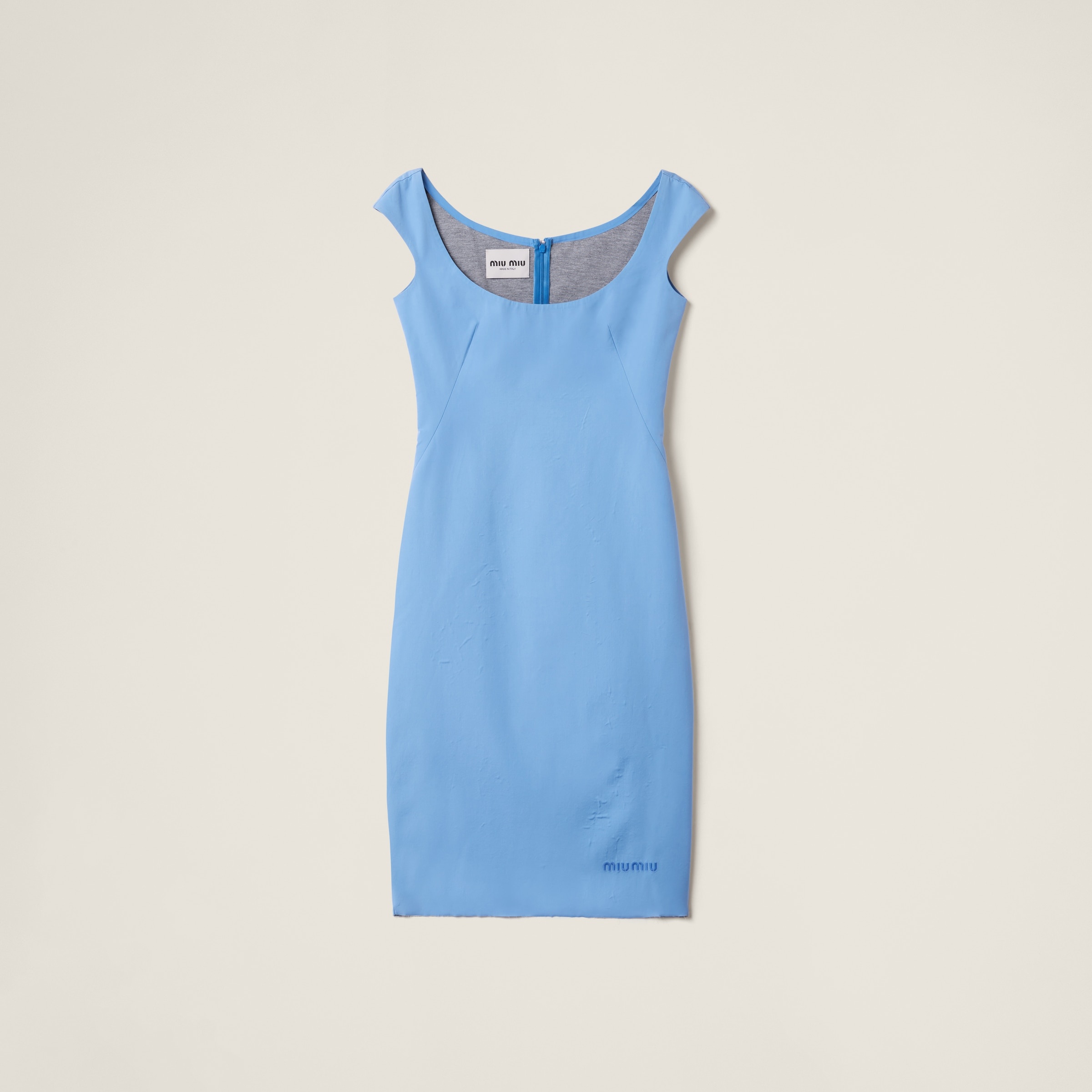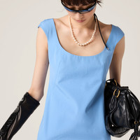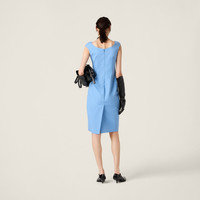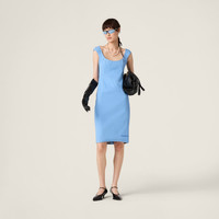 The simple lines of this dress are enhanced by the crisp texture of poplin, the soft touch of jersey, and the Miu Miu logo that completes the look with an iconic note. - Product code: MF5572_15T9_F0013_S_OOO - Slim fit - Scoop neck - Center back closure with zipper and hook - Cap sleeves - Embroidered logo - Back slit - Bonded fabric with poplin outside and jersey inside - Imported - The model is 180 cm tall and wears a size 38 Height 110cm Materials Main material: 100% Cotton