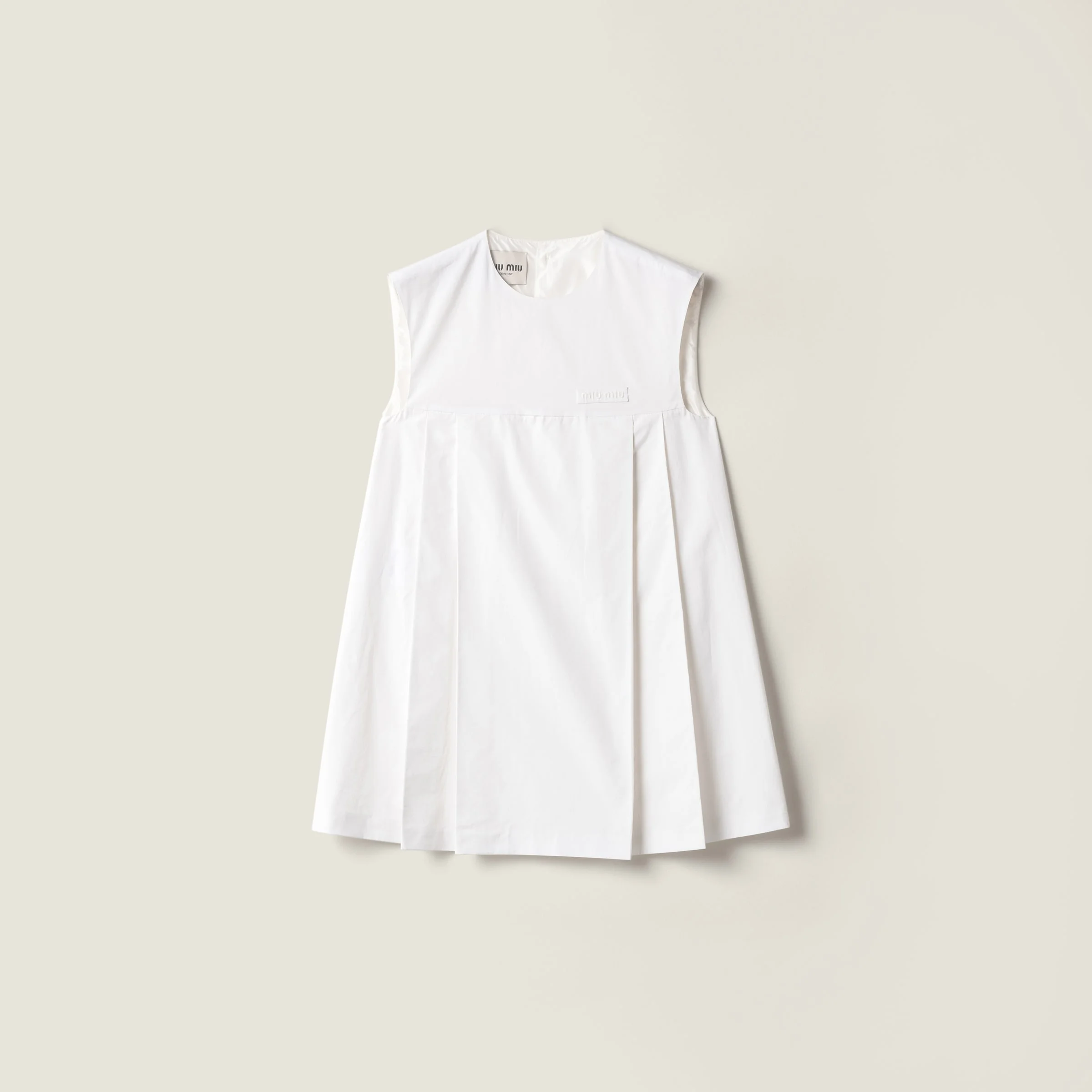 This mini-dress inspired by work uniforms reinterprets femininity in an unexpected, contemporary way. Simple, light poplin sculpts the silhouette with clean, sharp lines. - Product code: MF6381_19SE_F0009_S_OOO - Flared fit - Lined garment - Round neck - Back button closure - Sleeveless - Flared hem - Embroidered logo - Imported - The model is 177 cm tall and wears a size 38 Height 70cm Materials Main material: 100% Cotton