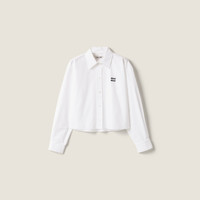 The classic men’s shirt is reinterpreted in this poplin version with a slightly cropped fit, enriched by detachable collar and cuffs that add character and versatility to a Miu Miu wardrobe icon. - Product code: MK1971_10RG_F0009_S_OOO - Loose fit - Shirt collar - Embroidered logo - Imported - The model is 180 cm tall and wears a size 38 Materials Main material: 100% Cotton