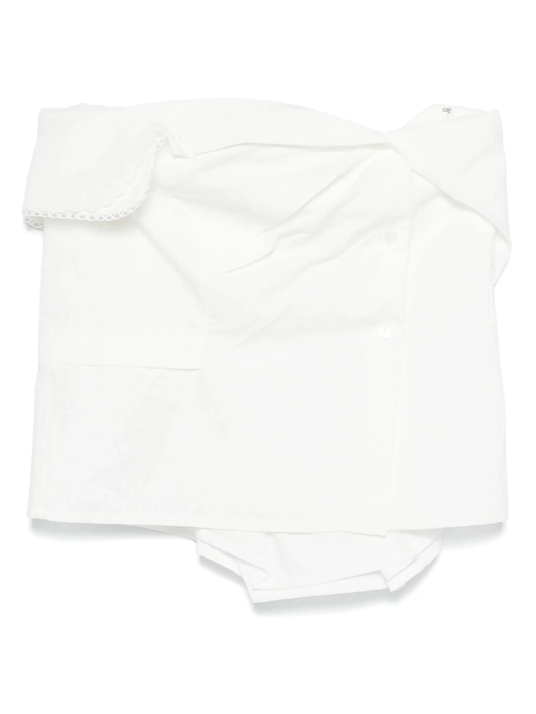 - white - concealed side hook and zip fastening - off-centre front button fastening - underwire cup - strapless Materials & Product Care Lining: Cotton 100% Outer: Cotton 80%, Linen/Flax 20% Size & Fit - Designed for a slim fit that sits just away from the body offering a close yet comfortable fit - Made from a midweight non-stretch fabric - The model is 1.77 m wearing size 40.