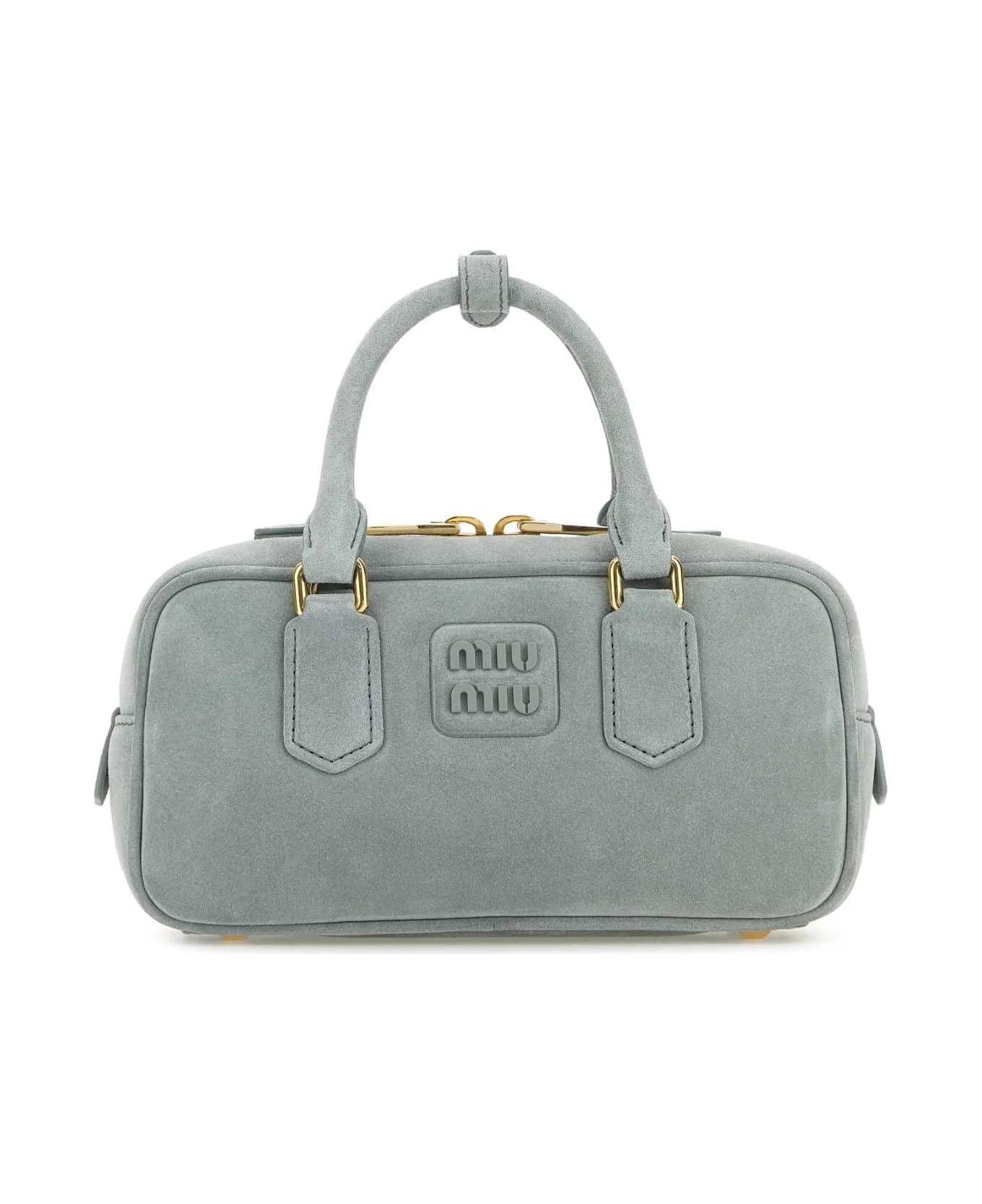 Powder Blue Suede Arcadie Handbag from Miu Miu Made in: Italy Color: LINFA Size and fit: - Width: 22 cm Height: 11 cm Depth: 8 cm Handle height: 9,5 cm Min shoulder strap length: 46 cm Max shoulder strap length: 52 cm Model number: 5BB142VOON2CS4F0035