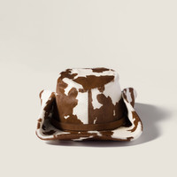 The bold texture of the animal-print leather gives iconic flair to the cowboy-inspired shape of this hat, distinguished by a contrasting leather strap with a gold buckle. - Product code: 5HC221_2ICT_F0EDH - Leather strap with metal buckle and belt loop - Drill lining - Engraved logo on belt loop - Imported Materials Main material: Calfskin