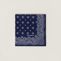 The bandana motif of this poplin scarf, recalling vintage references and distinctive elements of the Miu Miu aesthetic, is characterized by the color contrast that completes each look with a unique touch. - Product code: 5FF004_2ICG_F0008 - Printed logo - Imported Height 55cm Width 55cm Materials Main material: Recycled Polyester