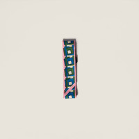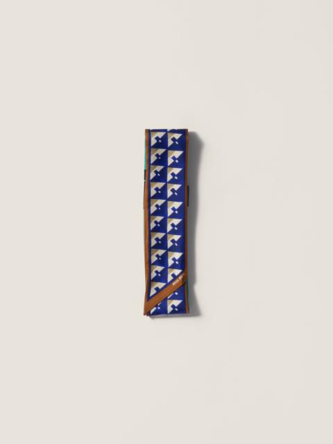 Colorful geometric patterns recalling vintage inspirations enhance this silk twill skinny scarf that completes seasonal looks with versatile, layered combinations. - Product code: 5FF008_2IG3_F05AG - Logo label - Dimensions: 85 x 6.0 cm - Imported Materials Main material: Silk