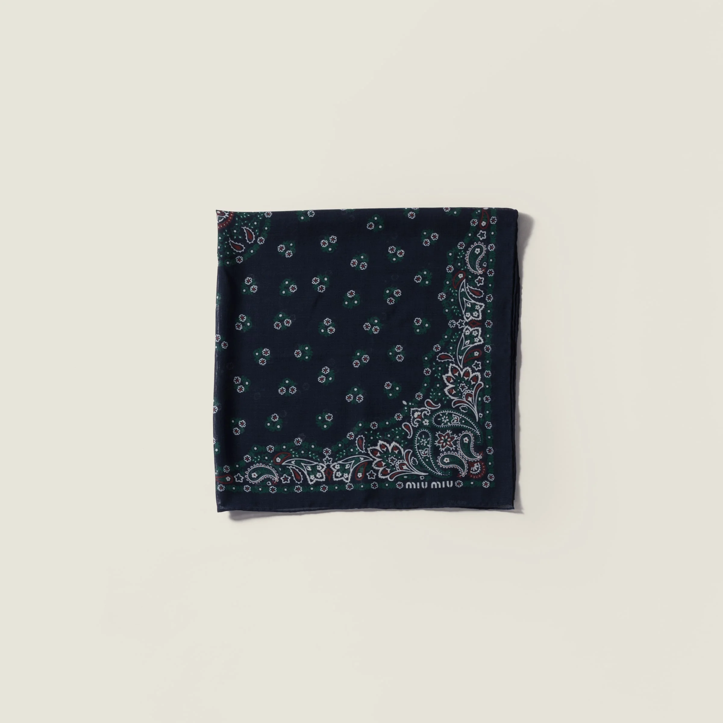 Crafted in wool and cashmere, this bandana-print scarf evokes Miu Miu’s vintage aesthetic. The color contrast enhances its character, adding a unique accent to any look. - Product code: 5FF001_2ID9_F0008 - Printed logo - Imported Height 90cm Width 90cm Materials Fabric