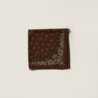 Crafted in wool and cashmere, this bandana-print scarf evokes Miu Miu’s vintage aesthetic. The color contrast enhances its character, adding a unique accent to any look. - Product code: 5FF001_2ID9_F0244 - Printed logo - Imported Height 90cm Width 90cm Materials Fabric