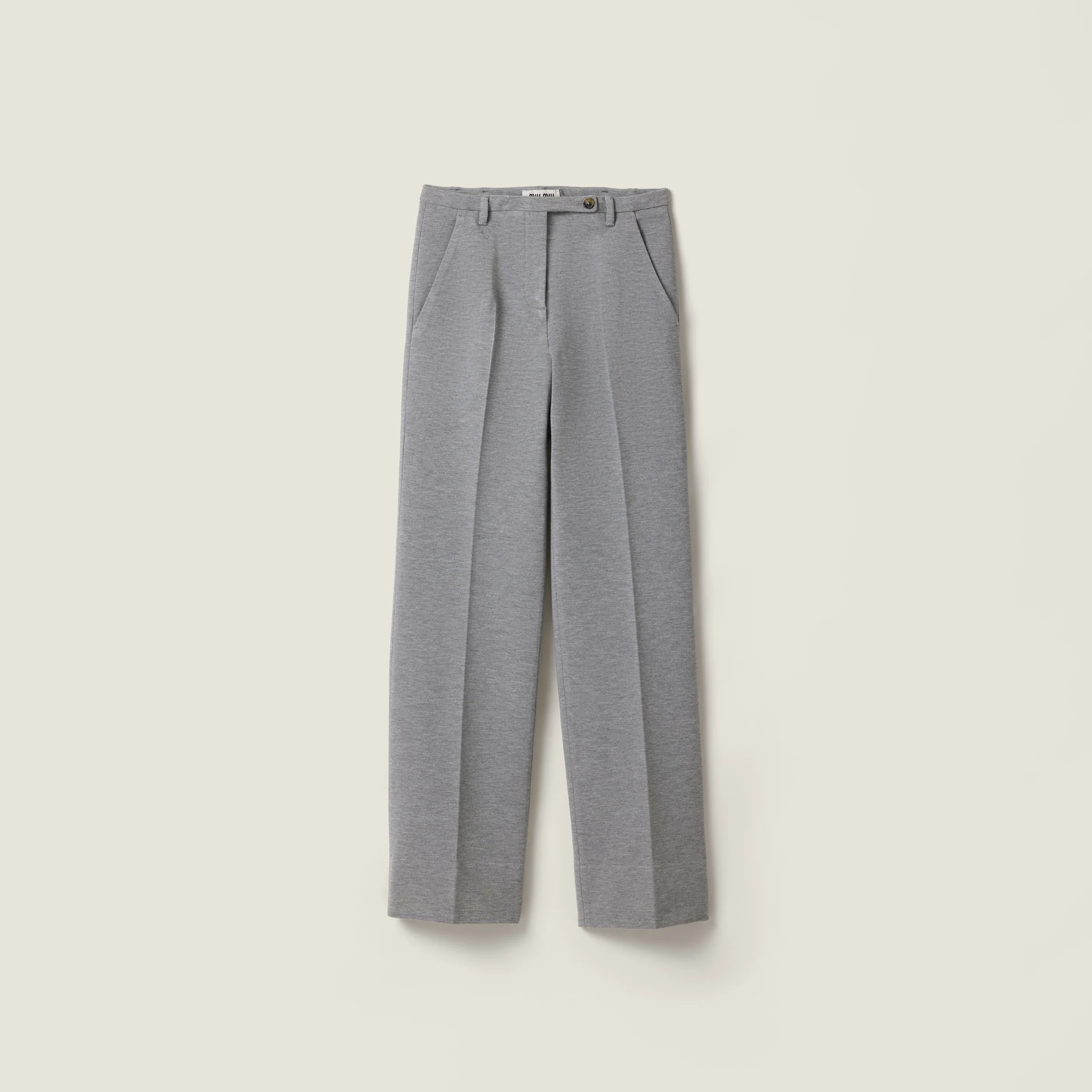 These knit pants stand out for their fabric stitch and a contemporary attitude that reinterprets simplicity with clean lines redefined by bold details full of character. - Product code: MP1931_18FQ_F0031_S_OOO - Menswear fit - Unlined garment - Zipper fly with button - Angled front slash pockets - Back welt pockets - Embroidered logo - Imported - The model is 176 cm tall and wears a size 38 Height 110cm Materials Main material: 4% Elastane 11% Polyamide 85% Viscose