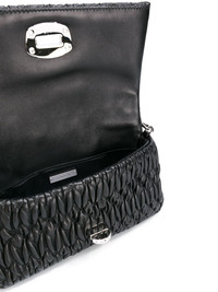 quilted clutch bag Black leather quilted clutch bag from Miu Miu featuring a quilted effect, a foldover top with flip-lock closure and a chain strap. Composition Outer: Nappa Leather 100%, Metal 100%, Crystal 100% Lining: Cotton 100% SIZE & FIT Model measurements Height 5 ft 10 in(1.79 m) Bust/Chest 32.67 in(83 cm) Hips 33.46 in(85 cm) Waist 24.01 in(61 cm) Measurement WIDTH 8.85 in(22.5 cm) HEIGHT 4.92 in(12.5 cm) HANDLE 11.81 in(30 cm) DEPTH 1.77 in(4.5 cm) STRAP 35.43 in(90 cm)