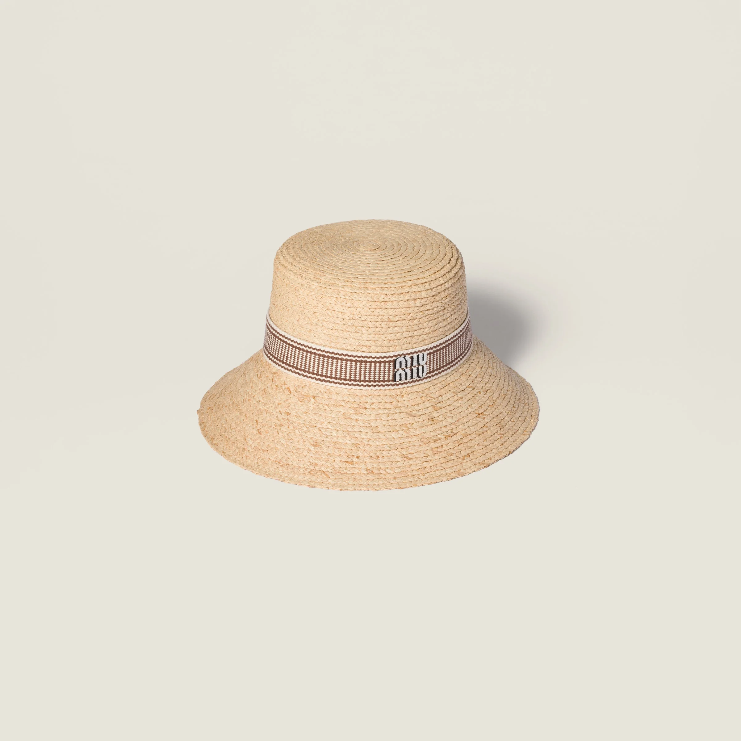 The typical raffia weave reinterprets the retro style of this hat embellished by a refined two-tone ribbon that adds a sophisticated touch to a versatile accessory with summer allure. - Product code: 5HC245_2IH4_F0C4Z - With ribbon - Logo on ribbon - Imported Materials Main material: Raffia