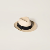Summer inspirations and classic lines define the style of this Panama hat made of raffia, which completes each look with iconic distinction. - Product code: 5HC232_2CWU_F0I55 - With ribbon - Embroidered logo - Imported Materials Main material: Palm Charcoal