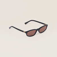 Miu Regard sunglasses are reinterpreted in a new sophisticated, classic version. The frame features narrow, rectangular lenses and slim rims that enhance its extreme lightness. The temples are embellished with the refined touch of the Miu Miu vertical logo. - Product code: SMUA06_E16K_FE10I_C_054 - Acetate frame front - Color: Black - Frame compatible with graduated lenses - 100% UVA / UVB protection - Standard fit - Lens-nose-temple measurement: 54-17-140 mm - Article comes with dedicated packaging - Other colors available - Imported Materials Main material: Acetate