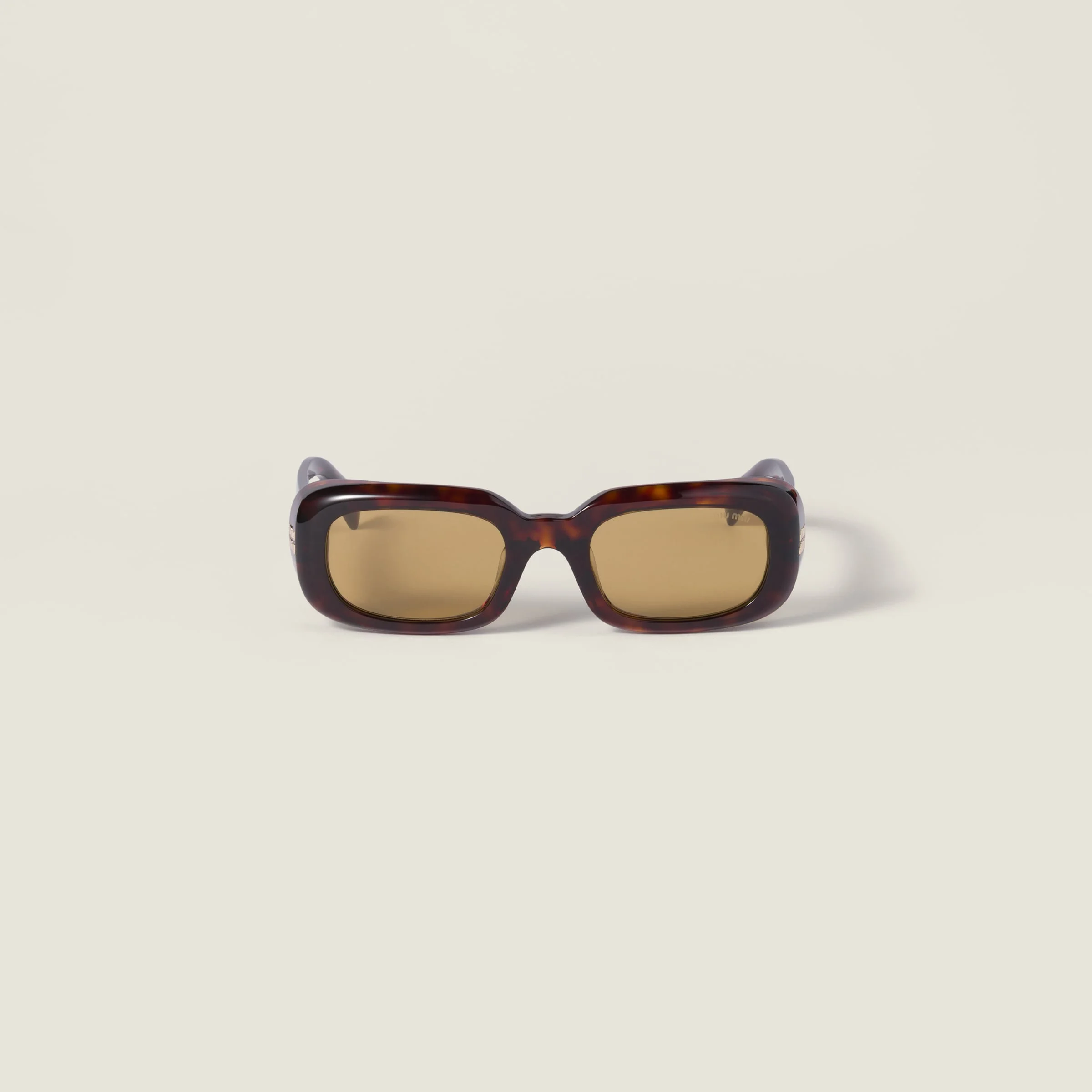 Miu Reverie sunglasses reinterpret the feminine, enveloping design in a rectangular version with more delicate volumes. The exclusive side spoiler made with several acetate layers highlights the excellent craftsmanship. The frame is embellished with the Miu Miu logo. - Product code: SMUB13_E27L_FE10Y_C_052 - Acetate frame front - Color: Rust Tortoiseshell - Frame not compatible with graduated lenses - 100% UVA / UVB protection - Standard fit - Lens-nose-temple measurements: 52-22-140 mm - Article comes with dedicated packaging - Imported Materials Main material: Acetate
