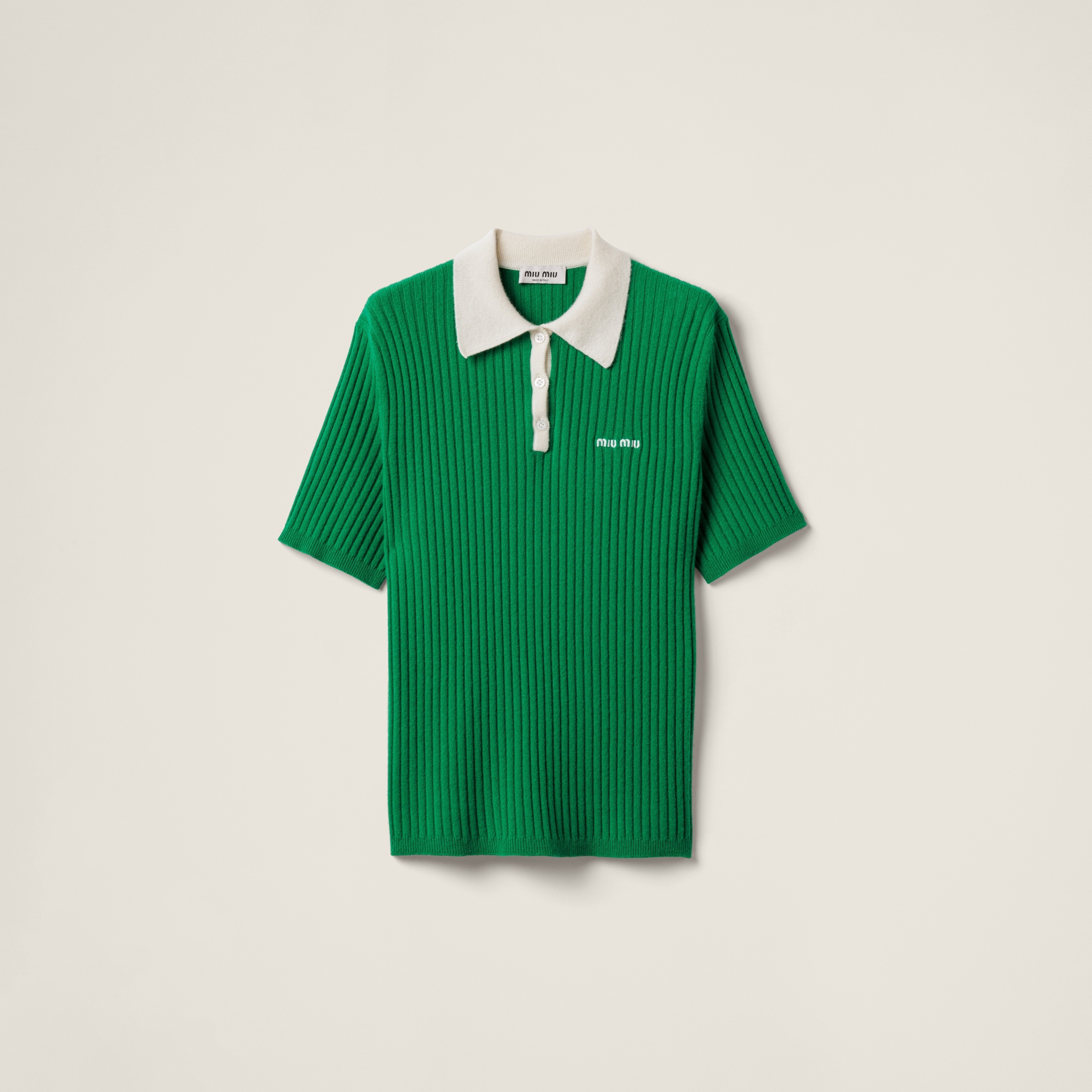 The tennis inspiration blends with preppy elements in this cashmere short-sleeved polo shirt. The essential lines are enriched with ribbed motif and contrasting colors in a classic garment with a versatile, contemporary touch. - Product code: MMLA34_1580_F0K0V_S_OOO - Short sleeves - Ribbed motif - Straight fit - Ribbed knit collar - Semi-raglan shoulder - Ribbed knit cuffs and hem - Three-button front closure - Embroidered logo - Imported - The model is 178 cm tall and wears a size 38 Height 65cm Materials Main material: 100% Cashmere