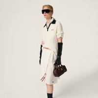 The tennis inspiration blends with preppy elements in this cashmere short-sleeved polo shirt. The essential lines are enriched with ribbed motif and contrasting colors in a classic garment with a versatile, contemporary touch. - Product code: MMLA34_1580_F075R_S_OOO - Short sleeves - Ribbed motif - Straight fit - Ribbed knit collar - Semi-raglan shoulder - Ribbed knit cuffs and hem - Three-button front closure - Embroidered logo - Imported - The model is 178 cm tall and wears a size 38 Height 65cm Materials Main material: 100% Cashmere