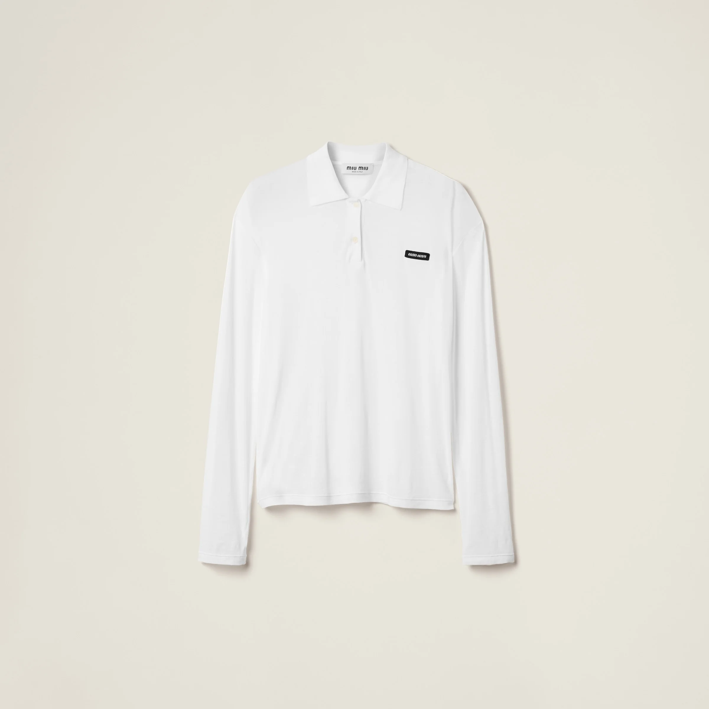 Understated lines and subtle transparencies redefine this ribbed jersey polo shirt, creating a play of lightness and simple versatility. - Product code: MJL050_133O_F0009_S_OOO - Oversized fit - Long sleeves - Polo collar - Twin-needle hem - Logo patch - Imported - The model is 178 cm tall and wears a size 38 Height 75cm Materials Main material: 100% Cotton