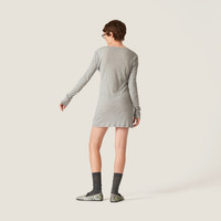 The Miu Miu logo patch gives an iconic and distinctive character to the sleek lines of this ribbed jersey dress that, thanks to its versatility, is perfect for creating different looks. - Product code: MJA842_133O_F0031_S_231 - Straight fit - Round neck - Long sleeve - Logo patch - Twin-needle hem - Imported - The model is 179 cm tall and wears a size 38 Height 75cm Materials Main material: 100% Cotton