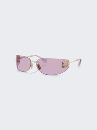 Details - Contemporary metal sunglasses - Ultra-light frame - Rimless, curved lenses featuring the Miu Miu vertical logo - Light pink lenses with gold frame - 100% UVA / UVB protection - Adjustable nose pads suitable for any fit - Lens-nose-temple measurement: 75-14-110 mm - Main material: Metal Vendor Color Code: Brand Style: 0MU A51S Designer/Brand: MIU MIU