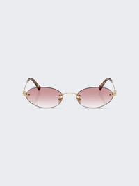 Details - Rimless oval sunglasses - Ultra-light gold-tone metal frame - Gradient pink lenses - Vertical Miu Miu logo on the temples - Compatible with graduated lenses - 100% UVA / UVB protection - Adjustable nose pads - Lens-nose-temple measurement: 51-20-140 mm - Material: Metal Vendor Color Code: Brand Style: 0MU A54S Designer/Brand: MIU MIU