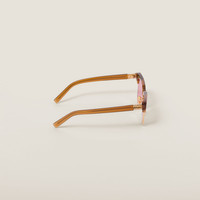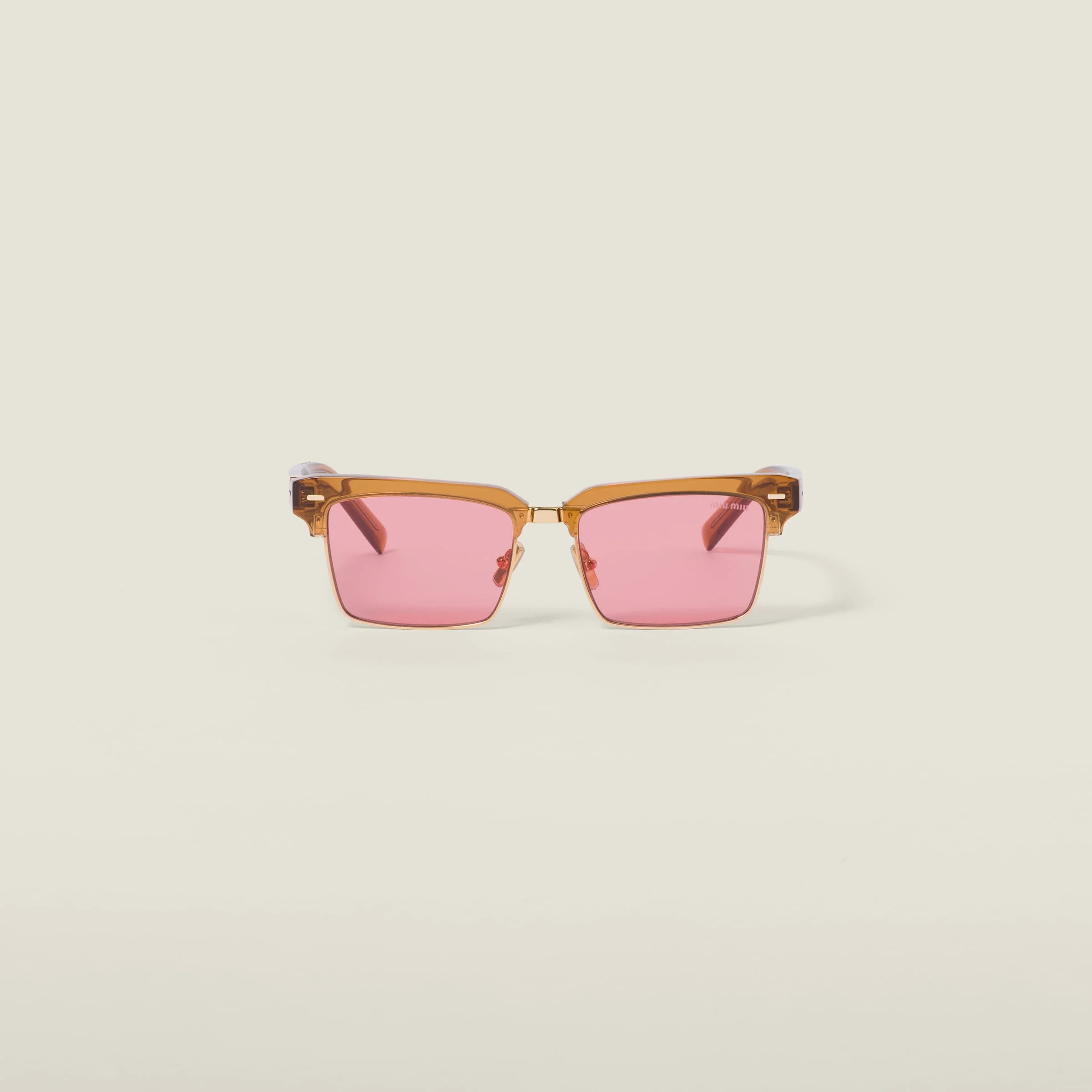 Iconic square sunglasses renewed with a modern touch. The acetate and metal frame is emphasized by captivating summery shades. The vertical Miu Miu logo decorates the straight temples. - Product code: SMU10Z_E15T_F01D0_C_054 - Bio-acetate frame front - Color: Transparent caramel - Frame compatible with graduated lenses - 100% UVA / UVB protection - Adjustable nose pads suitable for any fit - Lens-nose-temple measurement: 54-17-140 mm - Article comes with dedicated packaging - Other colors available - Imported Materials Main material: Acetate
