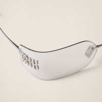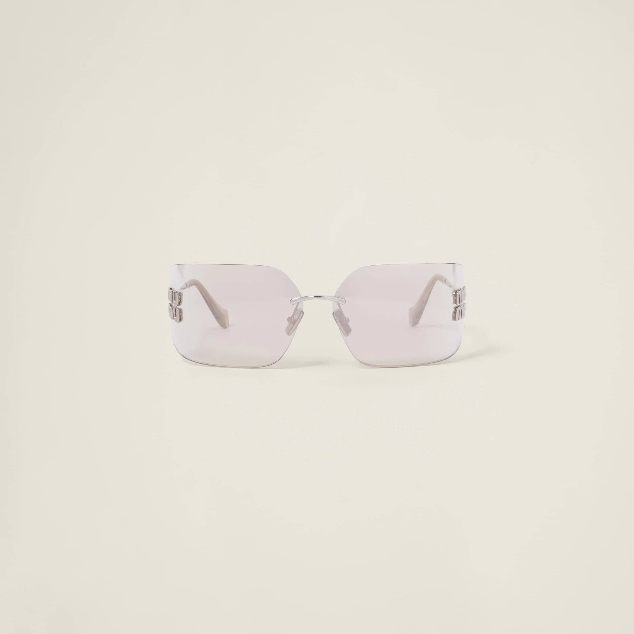 Metal sunglasses with a sophisticated, contemporary design. The ultra-light frame features a front with curved rimless lenses decorated with the impressive Miu Miu vertical logo. - Product code: SMU54Y_M1BC_FE10F_C_080 - Metal frame front - Color: Steel - Frame not compatible with graduated lenses - 100% UVA / UVB protection - Adjustable nose pads suitable for any fit - Lens-nose-temple measurement: 80-14-110 mm - Article comes with dedicated packaging - Other colors available - Imported Materials Main material: Metal
