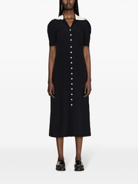 crystal-embellished crepe flared dress Highlights - Black - Crepe texture - Crystal-embellished buttons - Ruffled contrasting spread collar - Front button placket - Short sleeves - Front slit - Flared skirt - Ankle-length Composition Silk 100%, glass 100%, Metal 100%, Acetate 74%, Viscose 26% SIZE & FIT Model measurements Height 5 ft 11 in(1.8 m) Bust/Chest 34.25 in(87 cm) Hips 35.82 in(91 cm) Waist 24.8 in(63 cm) Washing instructions Dry Clean Only
