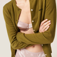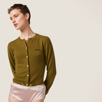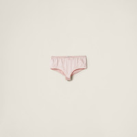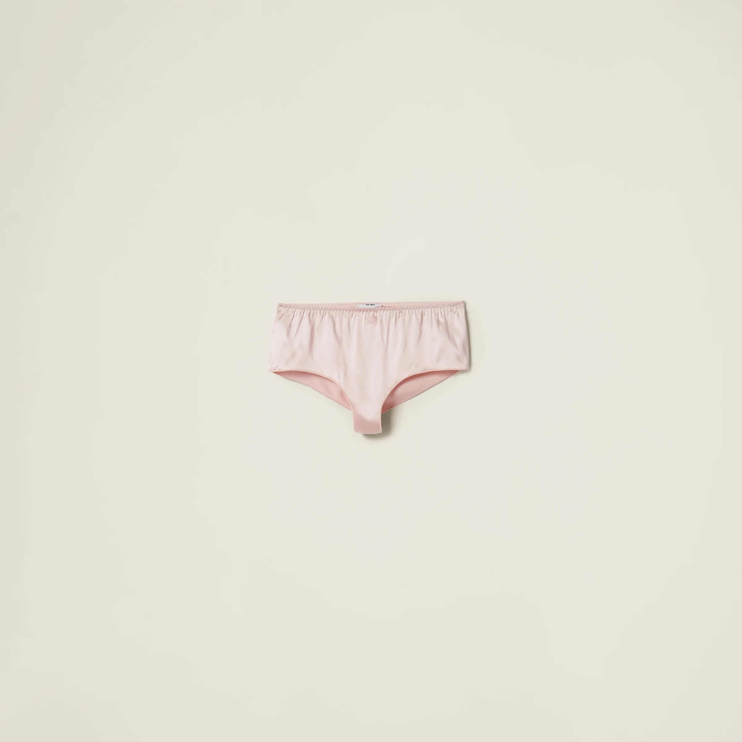 The embroidered Miu Miu logo stands out against the sleek lines of this satin panty thanks to its iconic and distinctive note. - Product code: SP9412_13RF_F0D91_S_232 - Embroidered logo - Imported - The model is 175 cm tall and wears a size 38 Height 31cm Materials Main material: 7% Elastane 93% Silk