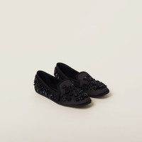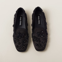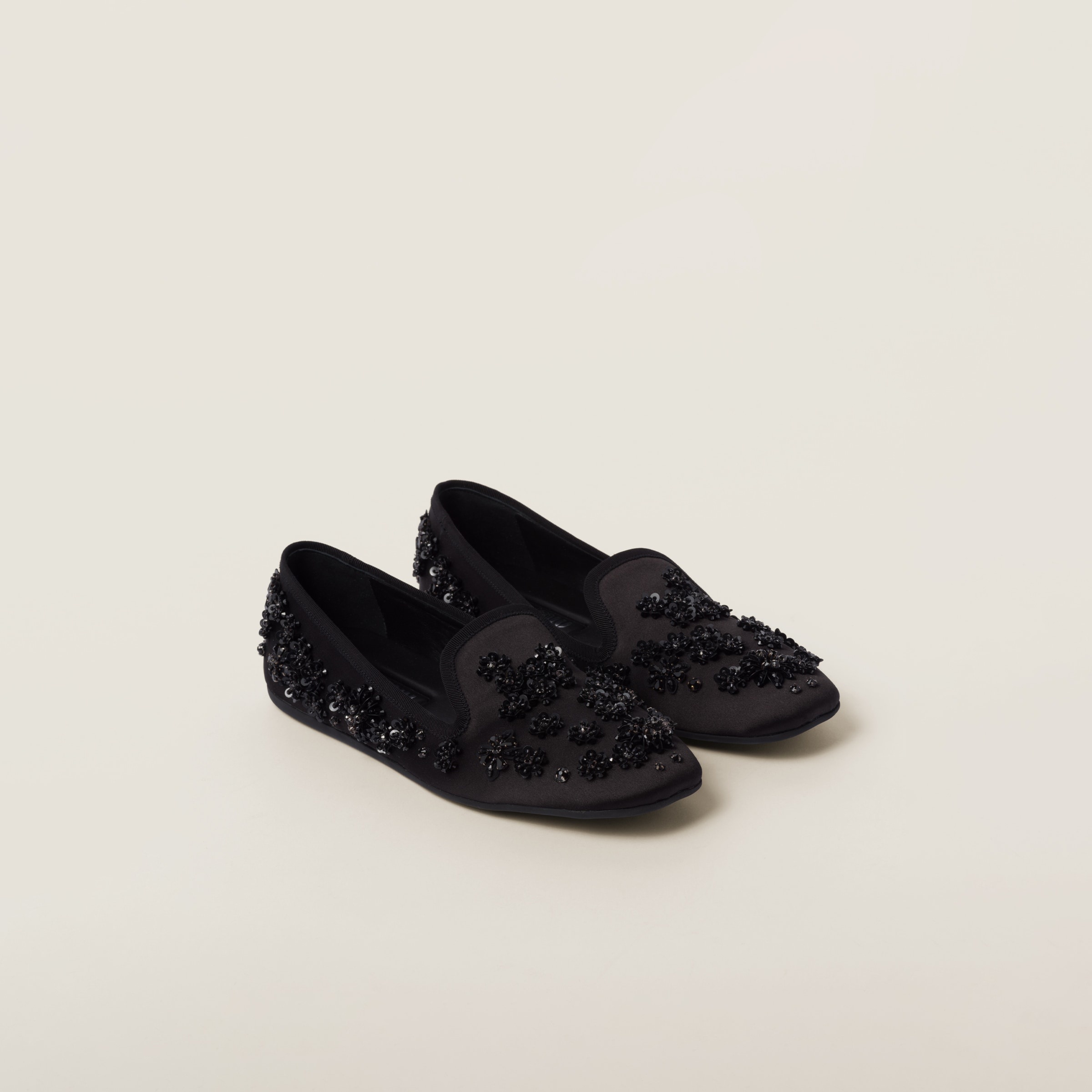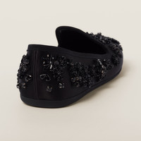 Precious embroidery with sequins and artificial crystals gives these satin slippers a refined style. The leather lining and rubber sole make the shoe even more comfortable. - Product code: 5S084E_049_F0002_F_005 - Upper embroidered with sequins and artificial crystals - Leather lining - Rubber sole - Leather insole - Imported