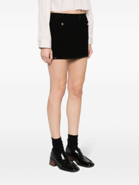 black wool blend fine knit sequin detailing gold-tone buttons logo patch to the rear ribbed waistband two front patch pockets straight hem thigh-length Size & Fit Model Measurements: Height: 1.8 m Bust/Chest: 80.0 cm Hips: 89.0 cm Waist: 62.0 cm Model wears size 40 Fabric and Care Designer Style ID: MG2133SOOO13RL Designer Colour: F0002 NERO Composition: Lining: Viscose 100%; Polyamide 4%, Wool 96% Washing instructions: Dry Clean Only Made in Italy