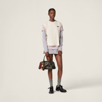 Refined layering characterizes this T-shirt set, which can be worn together or separately. The set includes three tees in different nuances: one sleeveless, one short-sleeved, and one long-sleeved. The Miu Miu logo patch in a contrasting color adds its signature to this stylish interpretation. The garment comes in special packaging. - Product code: MJE15_137E_F04DN_S_OOO - Set composed of three T-shirts - Straight fit - Crew-neck - Logo patch - Twin-needle hem - Imported - The model is 180 cm tall and wears a size 38 Height 64cm Materials Main material: 100% Cotton