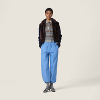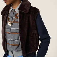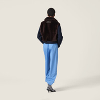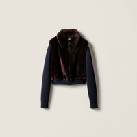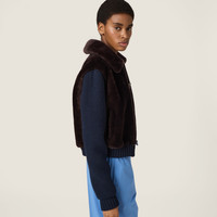The soft elegance of the shearling paired with Shetland wool and cashmere knitwear reflects the craftsmanship of the Miu Miu wardrobe. Harmonious volumes come together with contemporary details interpreting the essence of an elegant, cozy garment. - Product code: MPV963_177S_F0201_S_OOO - Regular fit - Lined garment - Shirt-style collar - Front zipper closure - Knit sleeves with ribbed knit cuffs - Wide welt pockets - Ribbed knit hem - Hot-stamped logo - Imported - The model is 178 cm tall and wears a size 38 Materials Main material: Lambskin